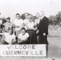 Healdsburg Rotary Club, greeting Guerneville Rotarians who traveled up river, September 1956 Back row, left to right - Dick Evangelisti, Oscar Birkhofer, Bud Noble, Bob Pepper, Blair Stapp. Front row, left to right - Red Gambetta, Jim Neeley, Jack Shatto, N. E. Waltenspiel Collection of four photos under one number, 88.1636.1 thru .4. Each has a separate PastPerfect file. See image #2 of this file for newspaper article.