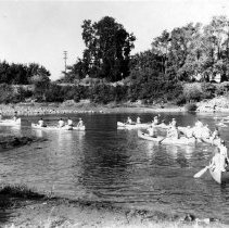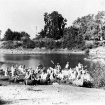 Healdsburg Rotary Club, annual canoe trip to Guerneville, September 1960 See similar photo, 88.1750.2. See newspaper article affixed to rear of photo for names of participants, see image #2.